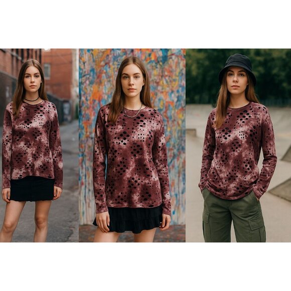 Hudson Outerwear Womans Tie-Dye Distressed Long-Sleeve Shirt M Purple & Black