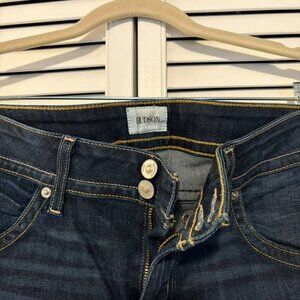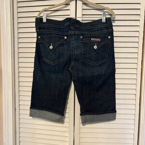 Hudson Palerme Knee Cuffed Bermuda Jeans Shorts in Stella (dark wash).