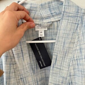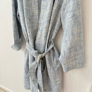Hudson Park Collection Blue White Waffle Knit Midi Wrap Robe Size L/XL