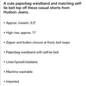 New with tags Hudson Paperbag Shorts. Pink. Self tying belt. Light weight. Stretch