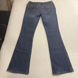 Hudson Signature Bootcut Flap Jeans Women Sz 30 Dark Blue Distressed+Stretch