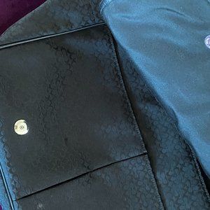 Bag Height: 12.5 in, Exterior Material: Canvas, Leather, Features: Adjustable Straps, Eco-Friendly, Expandable, Adjustable Strap, Exterior Color: Black Brand: Coach, Bag Depth: 4.5 in, Bag Width: 17 in, Hard/Soft: Soft, Lining Material: Leather. Smoke and pet free, daily ship.
