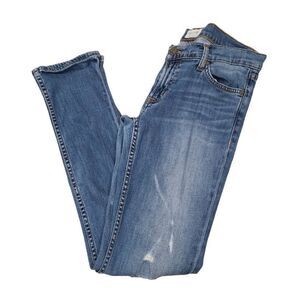 Hudson Straight Jeans Womens 27 Blue Denim Mid Rise Distressed 5-Pockets Casual.