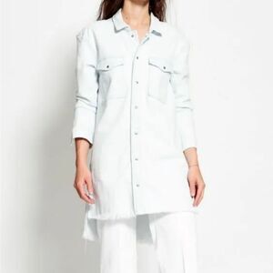 Hudson Taryn Light Blue Cotton Blend Raw Hem Long Sleeve Shirt Dress Size L
