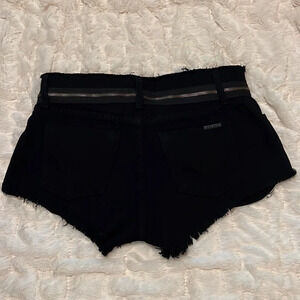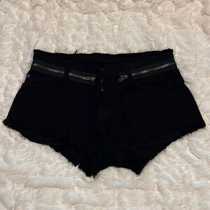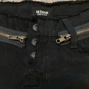 NWOT 🖤🖤Black Hudson The Rebel cut off distressed button fly shorts with zipper detail, True dark black, raw hems and fly cover, gold zipper detail around waist, 100% cotton, 14.5” waist, 2” inseam, 9” rise, smoke free home.