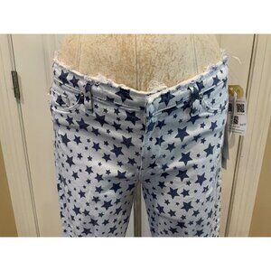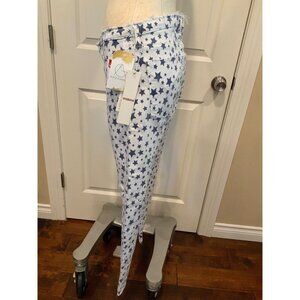 Hudson White W/Blue Star Print Cropped Distressed Skinny Jeans , Size 29, NWT!