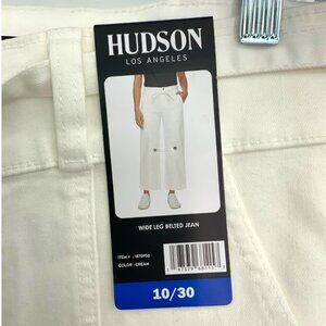 Hudson Wide Leg High Waist Belted Stretch Denim Jeans White Size 10 NWT