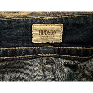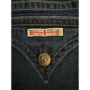 Keywords: Hudson jeans, bootcut jeans, women's jeans, dark wash, stretch fabric, classic design, comfortable fit, signature stitching, casual wear, polished look, excellent condition, USA made.