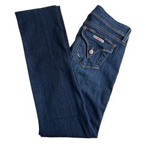 Hudson Womens Dark Wash Low Rise Distressed Flap Pocket Ginny Straight Jeans 27