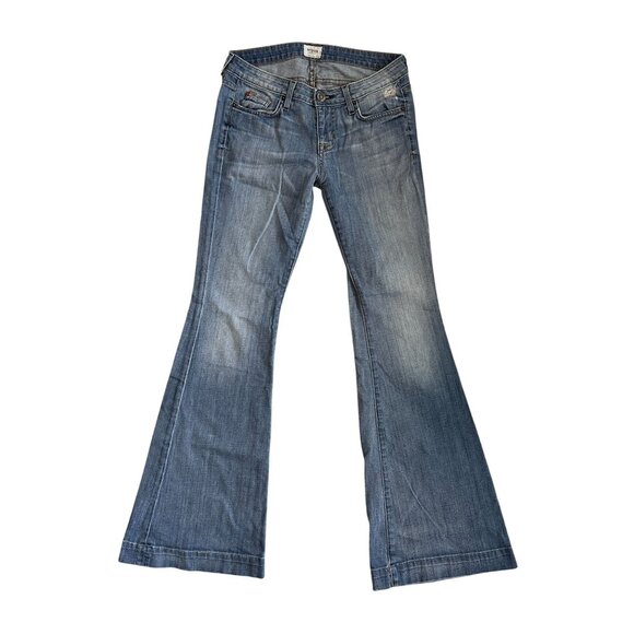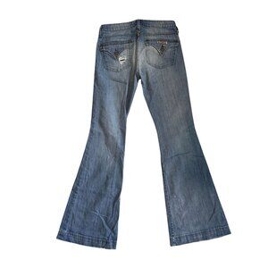 Hudson Womens Flared Jeans Size 27 Made In USA Medium Wash Denim Distressed