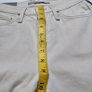 Elevate your summer wardrobe with these Hudson Women's Freya Low-Rise Bermuda Shorts in size 24. The beige raw hem and button closure add a touch of bohemian flair to these versatile shorts. Perfect for any occasion, whether it be a casual day out, a party, or a day at the beach.