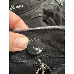 The product described is a pair of Hudson Women's Jeans in a Size 16/33, featuring a high rise, ankle length, and classic plus fit. These black stretch jeans are made from a cotton blend denim fabric with a dark wash, making them suitable for all seasons. The jeans have a zip closure, 5-pocket design, and are machine washable for easy care. Perfect for a sleek and stylish look, these slim-fit jeans are a versatile addition to any woman's wardrobe. Jeans are in excellent preowned condition with no major flaws holes or stains. Color is still a nice dark black. There is a little bit of scratching to button as seen in photos. Measurements in photos. I appreciate your business and strive for a five star rating . Please feel free to message with questions.