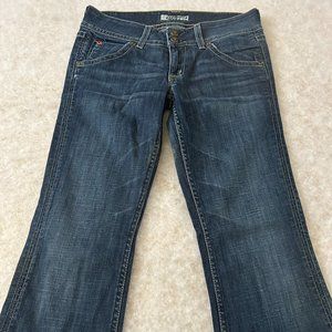 Hudson Women's Medium Wash Flare Jeans Whiskering 98% Cotton 2% Elastane Size 27