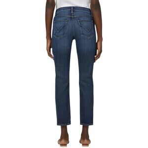 Super soft and stretchy dark wash jeans with light distressing and skinny leg. Features Hudson’s signature back pockets and comfortable mid-rise fit.