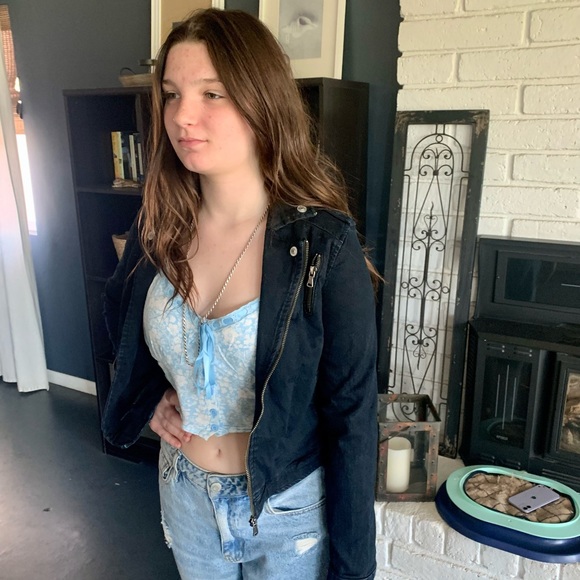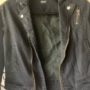Hudson black Jean jacket with side zips and shoulder straps this is a girls size large but can be worn as a women’s small the zipper does not work