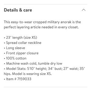 This easy-to-wear cropped military anorak is the perfect layering article needed in every closet.