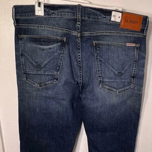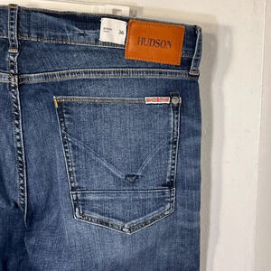 Hudson men’s 36 Byron 5pocket straight leg zip fly stretch,medium wash stretch logo Jean