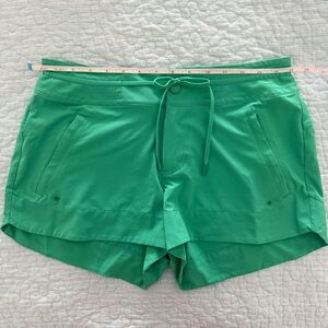 Hudson quick dry board shorts, bundle of two. Pink and orange floral print and green Athleta. Perfect for summer, beach/pool vacations, zip pockets front and back.