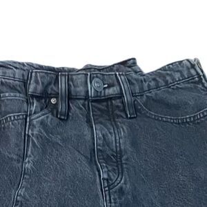 Faded black denim. Side zipper. One back pocket. High rise ankle/cropped.
