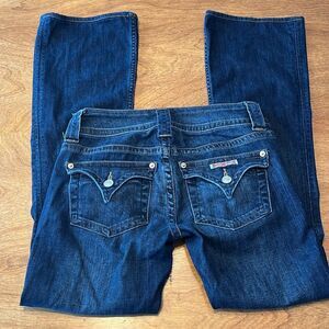 Experience timeless style with Hudson Jeans' blue boot cut denim, featuring a classic medium-to-dark blue wash with natural fading. Jeans in excellent condition!