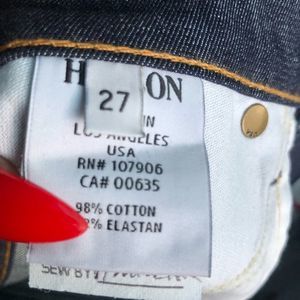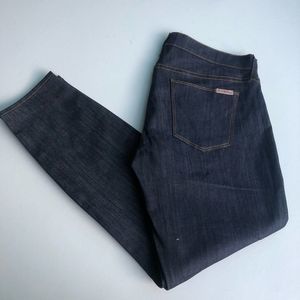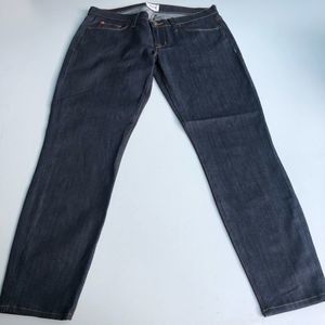 New with out tags. Dark wash with brown stitching. 26.5” long.