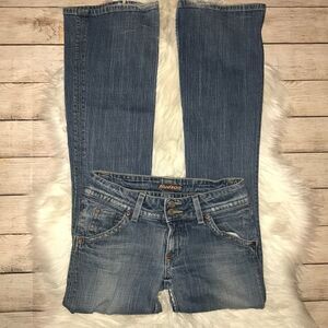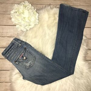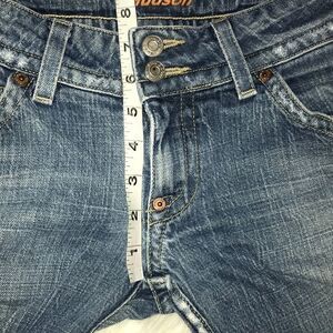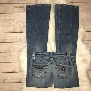 Preloved condition. Hudson Signature Flap Pocket Jeans. Boot cut. Wear on the back of the hems, and fraying at the seam between the legs. Please see all photos. 98% cotton, 2% spandex.