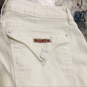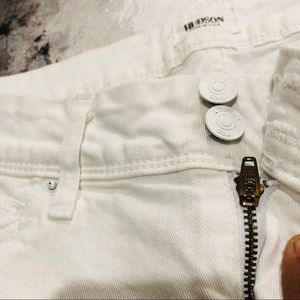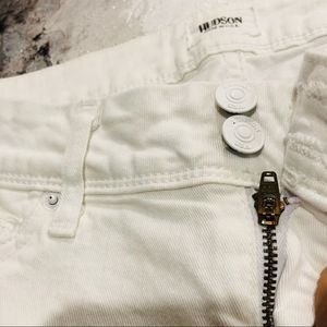 White denim woman’s jeans Hudson in white. Flap pocket with button. Small light stain, no other flaws. Preloved. Gentle use condition. As pictured.