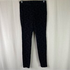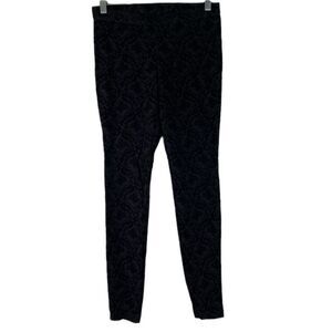 Hue Black Floral Velvet Leggings Stretch Small