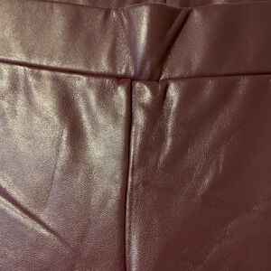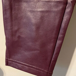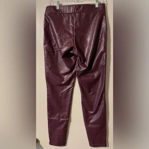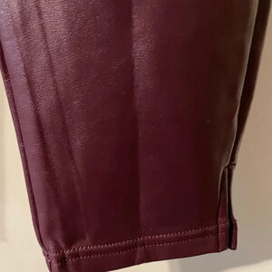 Hue Burgundy Side Slit Flat Front Leatherette Faux Leather Pull On Pant Size MD
