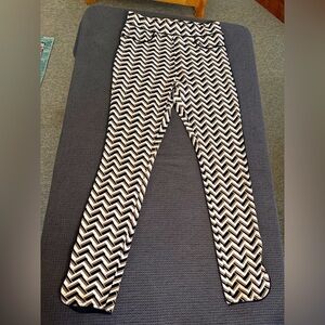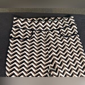 Hue Dressy Leggings - White/Brown/Black Geometric Design Size Small Whimsigoth