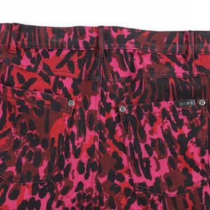 Hue Magenta Cheerful Cheetah High Waist Soft Denim Leggings, Size Medium…