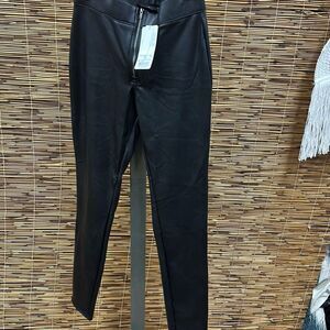 Hue Tudio Women' Mid-Rie Zip Front Faux Leather Legging - Size 2X