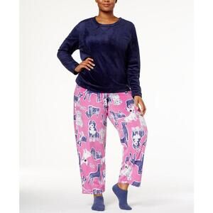 Hue Womens Sleepwear Plus Size Sueded Fleece Top & Printed Pants With Socks 1X