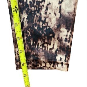 Approximately 27 inches at waist, plus elastic stretch and 28.5 inch inseam.