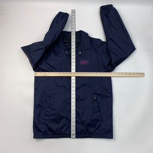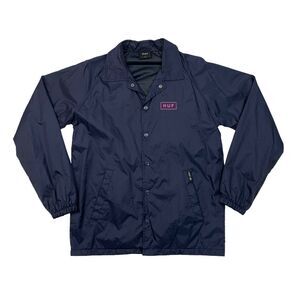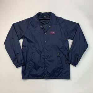 HUF JACKET MENS S SMALL NAVY BAR LOGO COACHES LIGHTWEIGHT WORLDWIDE WINDBREAKER