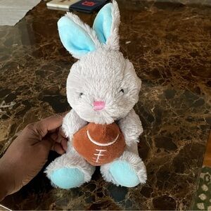HugFun Bunny Rabbit 9” Plush Stuffed Animal Holding Football gray blue