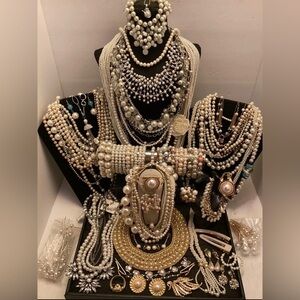 Jewelry comes from estate sales and personal collections. You will receive a nice variation of jewelry that may include necklaces, bracelets, earrings, rings, brooches, etc. Sample lots pictured.