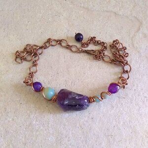 Huge Amethyst + Agate + Amazonite Beads & Copper! Handmade Asymmetrical Choker!