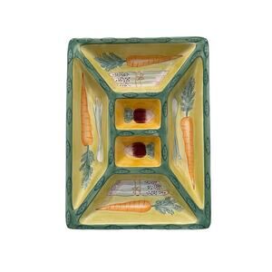 Huge & Beautiful Vintage Clay Art Vegetable Serving Tray Platter 18" x 13.5"