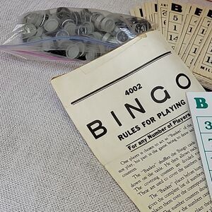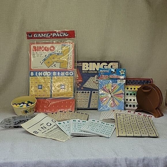 1974 Deluxe Edition BINGO Vintage Milton Bradley Wood Counters Manual Cards 4002. This comes with all the pieces plus instructions. . We have several assorted Bingo cards and counters. These are vintage pieces. A 1976 Bingo Game Pack has never been opened. A great bundle for the Bingo lover or collector. Check out the pictures to see all that is included.