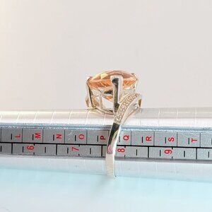 Huge Champagne Quartz Trilliant Fantasy-Cut Sterling Silver Cocktail Ring Size 8