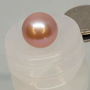This is a very large, beautiful pearl with astonishing luster. I picture it set in rose gold as a pendant, but yellow gold would look gorgeous too! This pearl has one tiny dimple, and a line from the dimple that is barely noticeable to the naked eye. The dimple would be more than covered by any prong that would be used to set the pearl. I have taken lots of pictures - of course they look like they are all the same, but they are of different angles of the same beauty.