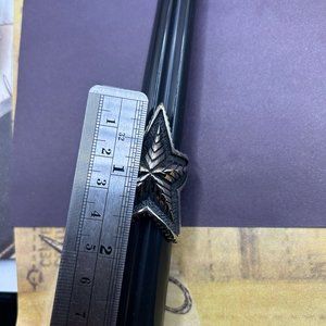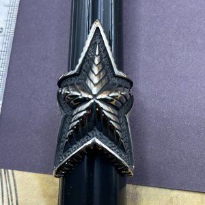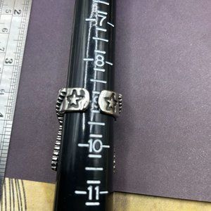 Smoke free home. Shown with ruler and ring sizer. Sizer and ruler or displays not included. Listing is for one unbranded heavy and large star ring that has an open back. It does not bend to adjust. It is thick and very sturdy stainless steel with black accent. See with ruler. Ring is preowned and may shown minor evidence of age and use. Rock star, punk, statement, goth, gothic, knuckle, biker, ring, jewelry.