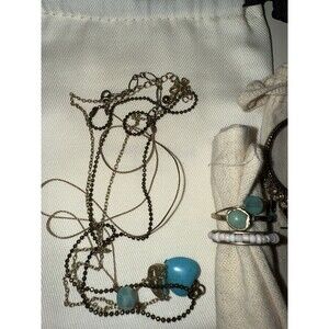 This product is a huge lot of 14 fashion boho jewelry sets, featuring turquoise and amazonite stones in necklaces, earrings, and rings. The sets are colorful and include a variety of accessories in one convenient package. Each set is designed with a boho style and includes a ring size 8. Perfect for those looking to add a pop of color and a fashionable touch to their jewelry collection.