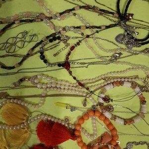 Mostly all cheap costume jewelry. NO precious metals. All used. NONE broken. Some may or may not need to be cleaned. AS IS.