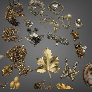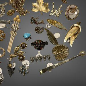 Huge Lot Vintage Brooches Pins Womens Jewelry
