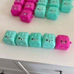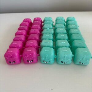 This is a massive lot of 35 Shopkins Lil' Shoppies Petkins Mini Backpacks (sometimes called Petkin Luggage) from Shopkins Season 5. They come in two fun, vibrant colors: Hot Pink and Teal/Aqua. These cute, animal-faced containers are perfect for any Shopkins collector or as an awesome party favor lot!