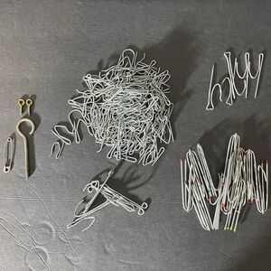 This is a huge lot (1 pound) of vintage curtain drapery pleating hooks. The hooks are made of metal and come in a mix of various widths and lengths. They are suitable for use with curtains and are a finished silver color. The lot includes multiple items, all designed for curtain hardware.