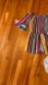 * Colorful, print cap sleeve V-neck blouse with partial zipper in back (size medium)