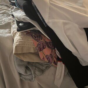 This lot has blazers, blouses, dress pants, dresses. Brands like Lane Bryant, Soft Surroundings, Calvin Klein, Loft Plus much much more. Sizes are 18, 20, 22. Major closet clean out just retired and I don't need a professional wardrobe. There is at least 75 pieces. All in really good condition no tears, no stains. Some have tags still never worn.Perfect for someone who is just starting out or if you're a reseller.
